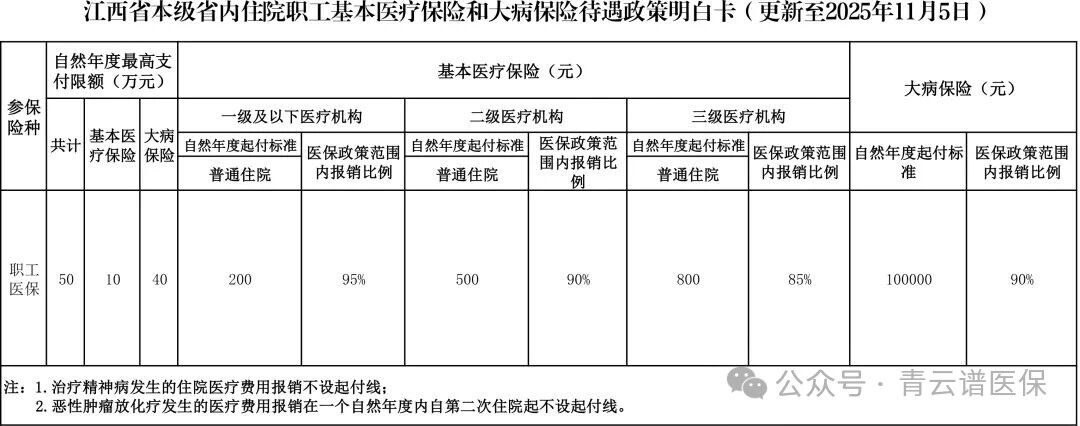 江西省本级省内住院职工基本医疗保险和大病保险待遇政策明白卡