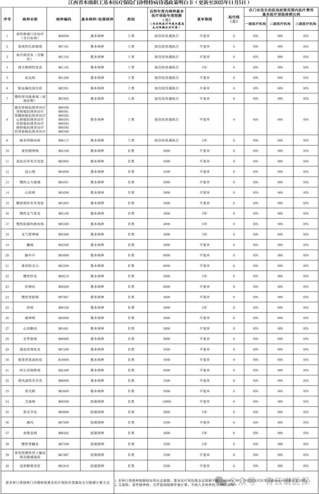 江西省本级职工基本医疗保险门诊慢特病待遇政策明白卡