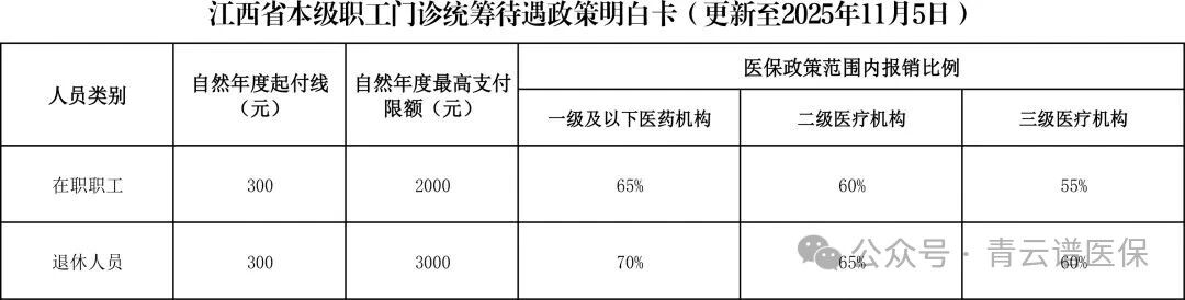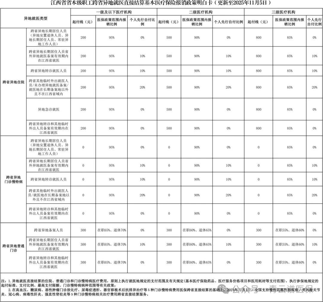 江西省省本级职工跨省异地就医直接结算基本医疗保险报销政策明白卡